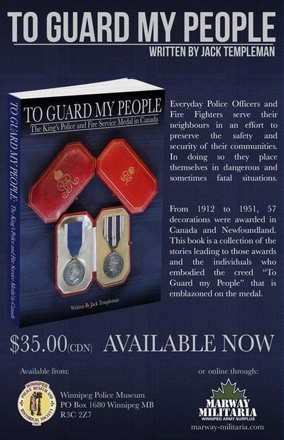 This book began over 20 years ago with the simple discovery of a single unknown medal found among the collections in the Winnipeg Police Museum. Awarded to Constable Leonard James Davies, the decoration was found to have been the King’s Police and Fire Services Medal. Of the 52 medals awarded in Canada and five in Newfoundland between 1912 and 1951, five were awarded to Winnipeg Police officers.